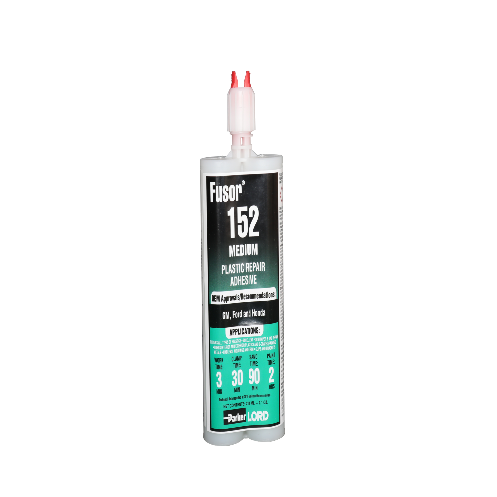 Fusor® 152 adhesive is a two-component, urethane-based adhesive used for structural and cosmetic repair of bumpers, bumper tabs, and other interior and exterior plastic components.